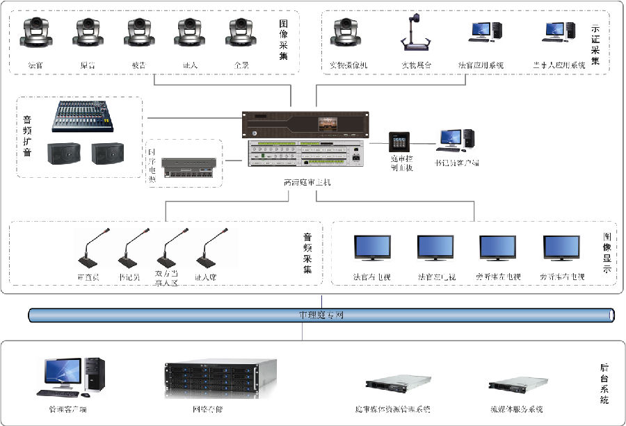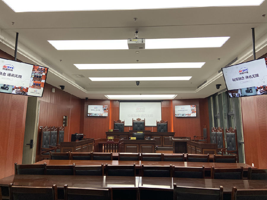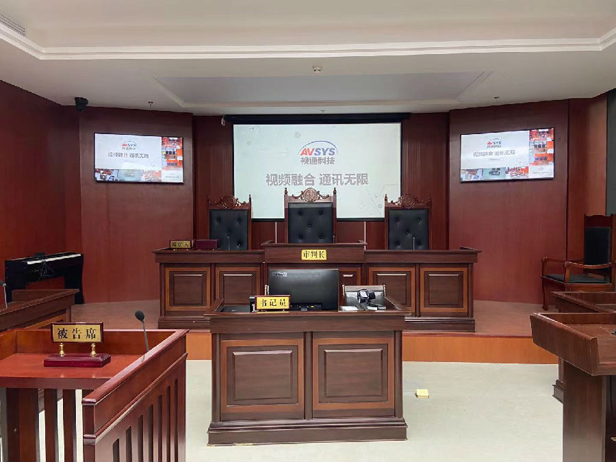 本项目共建设1个模拟法庭,使用1台视通科技(AVSYS)高清庭审主机,利用网络技术、先进的多媒体技术以及集中控制技术,实现审理过程中的实况采集、证据公开展示、笔录校对、审理直播,并对审理庭内部声、光、电等各种设备进行集中自动化控制,提供审理信息化的强大应用。